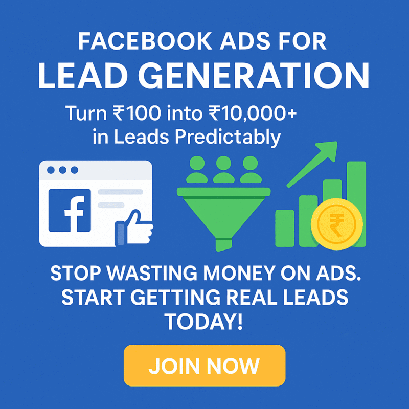 This course teaches you how to turn β‚Ή100 into β‚Ή10,000+ in leads β€” predictably.